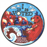 Stickers News: Our cup runneth over this week! West Virginia Secretary of State Kris Warner’s office organized a contest for eighth grade students to design a new “I Voted” sticker. Overall, there were more than 1,100 entries from 42 counties. Each county chose a winning design, and then the contest was narrowed to four regional winners. “We gather here in this beautiful chamber to recognize the winners of West Virginia’s first ever ‘I Voted’ sticker contest,” Warner said. “This sticker contest has been an exciting new way to engage our young people, our schools, our parents, our teachers, our county clerks and our communities. And what better time to honor their work than this year, as we look towards America’s 250th anniversary.” The contest saw slightly fewer than 16,000 votes, which Warner noted was more votes than were cast in 54 of the 55 counties for the last non-