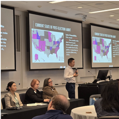 These conferences—Information & Misinformation in Elections (Jan. 16-17, 2025) and Protecting the Election: AI & Governance (Oct. 16-17, 2025)—responded to a fragmented and contested information environment, where false claims about election processes spread quickly and election administrators operated under intense scrutiny and resource constraints. The goal was not only to share technical solutions or academic findings, but to build trust, surface practical insights, and strengthen networks that extend beyond individual election cycles.